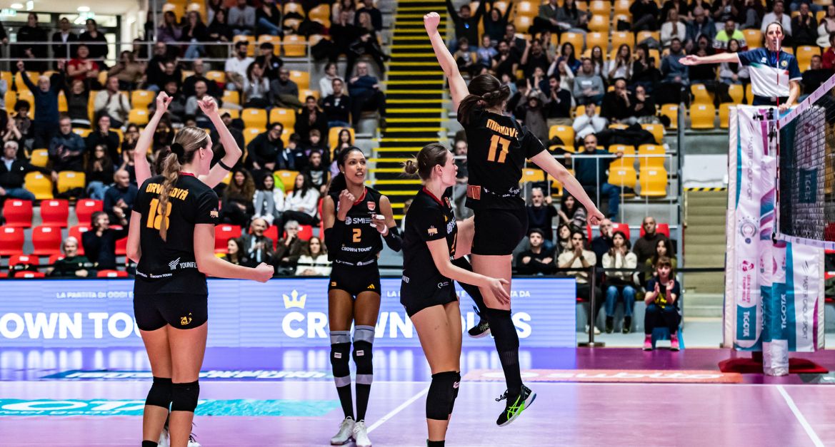 La SMI Roma Volley accarezza il sogno, lo stringe per due set, poi lo lascia scivolare via punto dopo punto. Gara 1 dei quarti di finale playoff si trasforma in una battaglia lunga, nervosa, a tratti dominata e poi improvvisamente sfuggita di mano. Alla fine esulta Costa Volpino, che espugna Roma al tie-break (2-3) e si prende un vantaggio pesante nella corsa verso la semifinale. Una sconfitta che pesa non solo per il risultato, ma per come è arrivata: avanti 2-0, con la partita sotto controllo, le giallorosse si sono