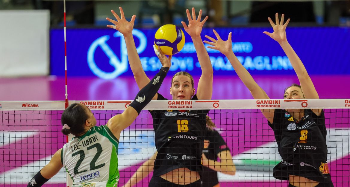 Pesaro, 12 febbraio 2025 – La Megabox Ondulati del Savio Vallefoglia non lascia scampo alla SMI Roma Volley, imponendosi con un secco 3-0 (25-13, 25-22, 25-14) al Pala Megabox di Pesaro. Per le Wolves si tratta di una battuta d’arresto dopo i due successi ottenuti contro Cuneo in campionato e Charleroi in Challenge Cup.